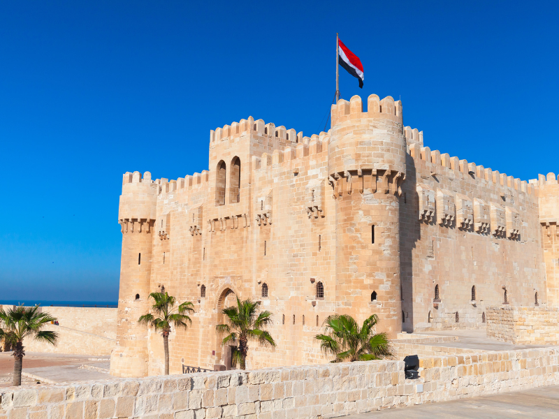 Built on the exact spot of the former Lighthouse of Alexandria (one of the Seven Wonders of the Ancient World), this 15th-century fortress guards the harbor with proud sea views.