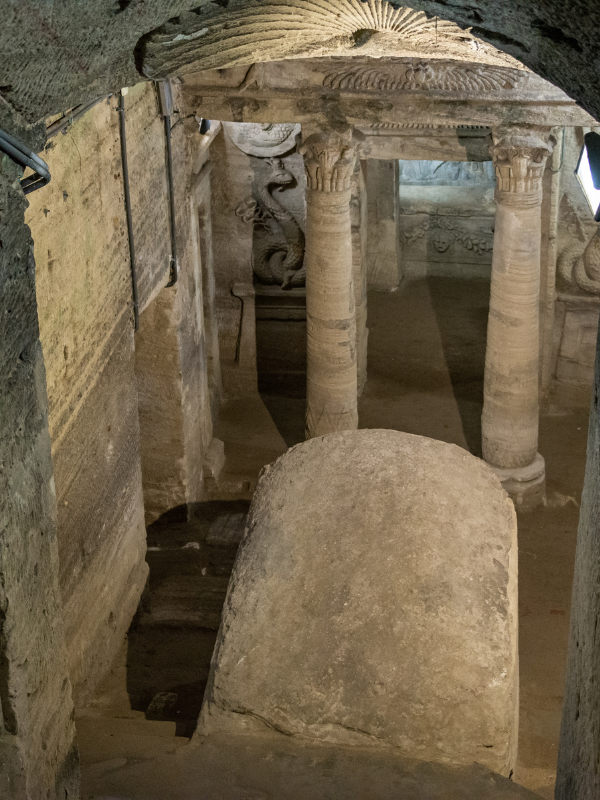 An underground necropolis mixing Egyptian, Greek, and Roman styles — a fascinating and eerie window into ancient funerary customs.