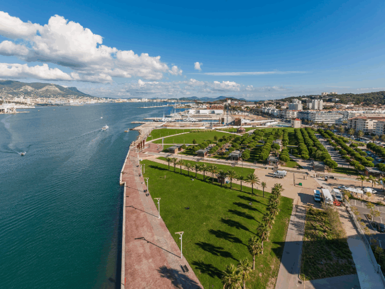 A beautifully redeveloped shipyard area turned waterfront park – great for group walks and views of Toulon’s harbor.